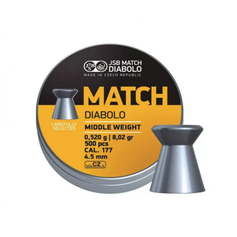 Diabolo JSB Match pro pušku ráže 4,50 mm je navrženo pro precizní terčovou střelbu, s využitím ploché hlavičky, která dokonale označí místo průstřelu.