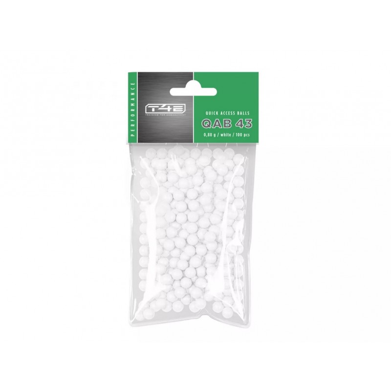 Quick Acces Ball (QAB) kal. 43 jsou speciálně navrženy s cílem zabránit jejich zasekávání ve zbrani. Tento efekt je dosažen pomocí polymerového materiálu s hladkým skleněným povrchem.