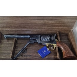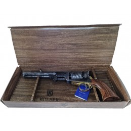 Dekorační replika perkusního konfederačního revolveru COLT NAVY z roku 1862 od španělské společnosti KOLSER. Replika konfederačního revolveru Colt Navy z roku 1862 je vyrobena z kovu a povrchová úprava ve starém vzhledu dokonale reprodukuje pistoli vyrobenou Samuelem Coltem pro policii, založenou na modelu z roku 1851, ale s kulatou hlavní namísto klasické osmihranné. Střenky této repliky jsou vyrobeny ze dřeva.