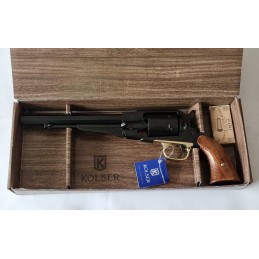Věrná replika legendárního Remingtonu 1858 v černém provedení od značky Kolser vás přenese do doby americké občanské války. Tento revolver vyniká precizním zpracováním, funkčním mechanismem se simulovanou střelbou (do nábojnic lze vložit kapsliky) a realistickými povrchovými úpravami.