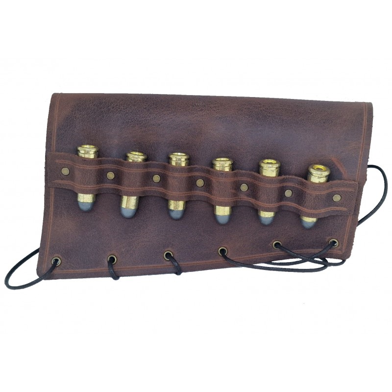 Kožený potah s náboji pro repliky pušek Winchester od společnosti Kolser. Tento potah je dodáván včetně 6 kusů nábojnic.