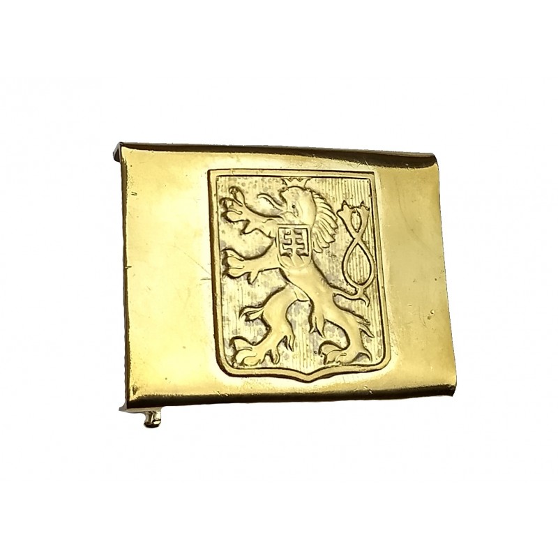 Replika vojenské přezky na opasek - Československo. Přezka je vyrobena z kovu a povrchová úprava je v provedení mosaz.