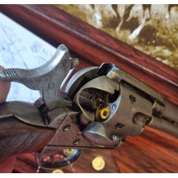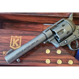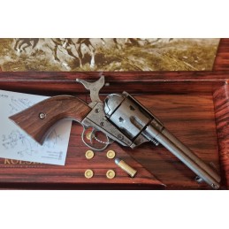 Dekorační replika, colt Peacemaker ráže .45 s dřevenou rukojetí, povrchová úprava hlavně je ve stříbrném, starobylém provedení. Mechanizmus natahování a otáčení bubínku je funkční. Zkrácená verze hlavně.
