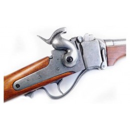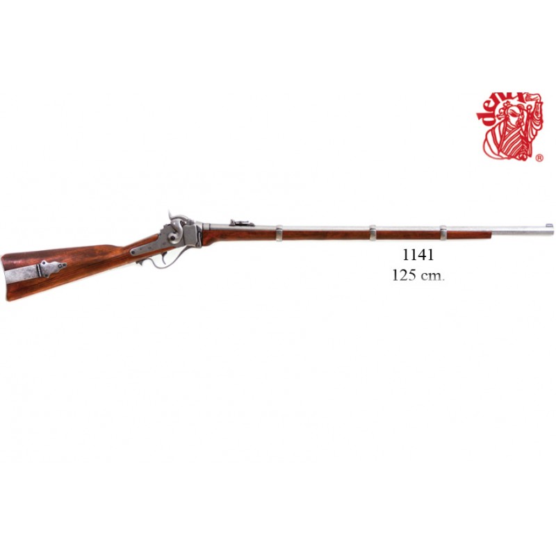 Dekorační replika, vojenská puška SHARPS, USA 1859 používaná za americké občanské války. Mechanizmus zbraně je pohyblivý. Replika lze naprázdno natáhnout a po stisknutí spouště zbraň cvakne. Tato vojenská puška byla vyráběna od roku 1859 do roku 1866 v provedeních puška nebo karabina. Celkem bylo vyrobeno cca 115 tisíc kusů.