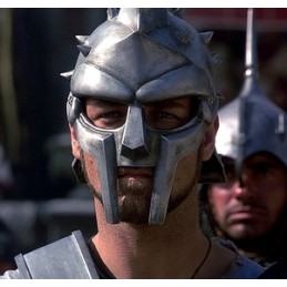 Gladiátorská přilba Maximus - autentická filmová replika. Tato gladiátorská přilba s kovovými hroty je replika přilby z filmu Gladiátor, kde hrál Russel Crowe. Maximus měl na sobě podobnou helmu.
