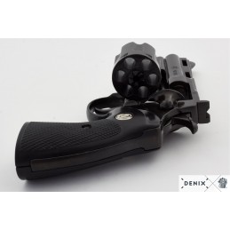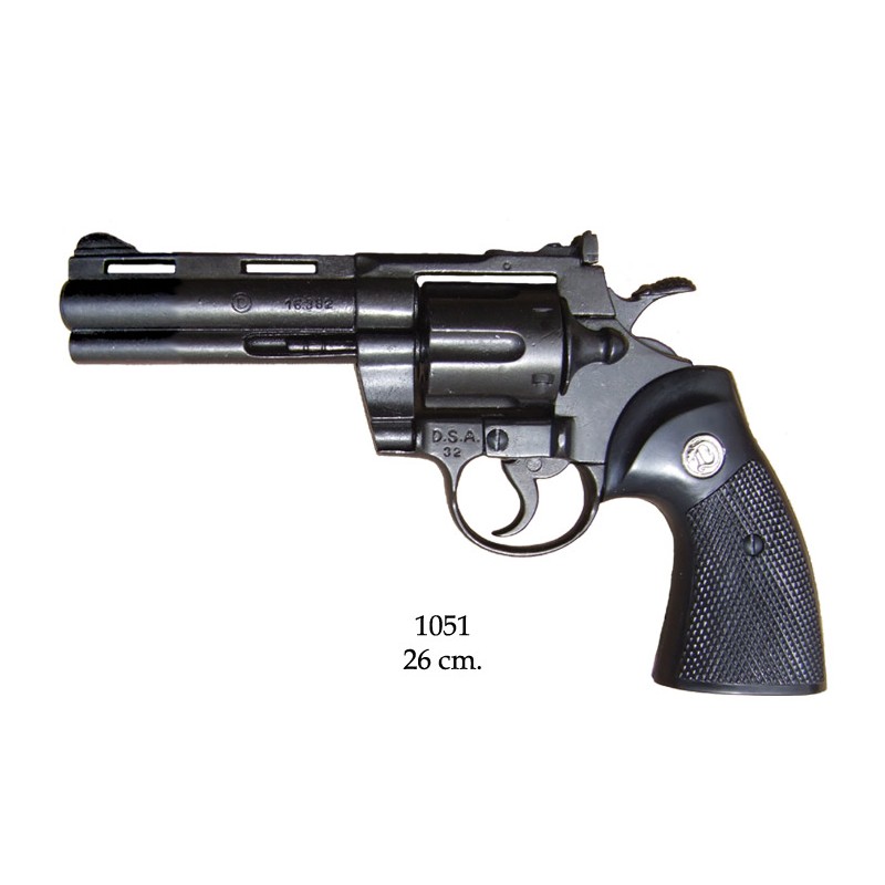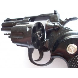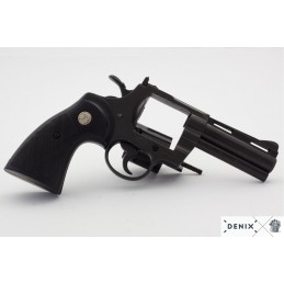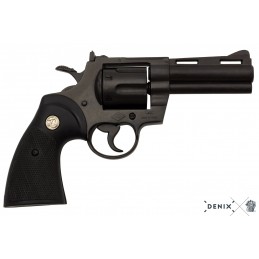 Dekorační replika, colt Python 357 Magnum, délka hlavně 4 palce, USA 1955. Mechanizmus je pohyblivý. Lze natáhnout a po stisknutí spouště revolver cvakne. Do coltu nelze vložit dekorační a kapslové náboje.