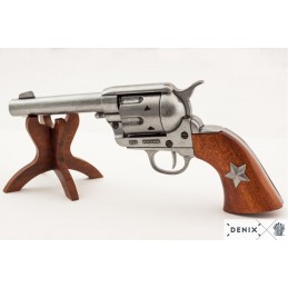 Revolver M1873 Peacemaker má starobylou šedou povrchovou úpravu a na dřevěné rukojeti se nachází hvězda. Revolver byl vyráběn v několika formách a v mnoha kalibrech v letech 1872 - 1940 s celkovou produkcí asi 350 000 kusů. Revolver byl vyráběn pro vojenské i civilní použití, většinou v ráži 45. Tato replika nese na dřevěné rukojeti hvězdu Texas.