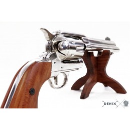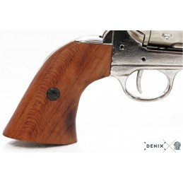 Dekorační replika, colt Peacemaker ráže 45, USA 1886, vyrobeno z kovu a dřeva. Tato replika coltu Peacemaker má pohyblivý mechanizmus. Lze natáhnout a po stisknutí spouště revolver cvakne. Kolt je vyroben v niklové povrchové úpravě.