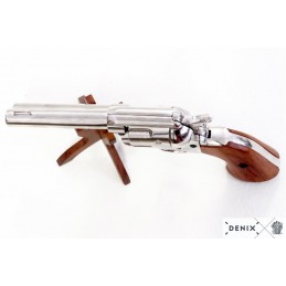 Dekorační replika, colt Peacemaker ráže 45, USA 1886. Niklová povrchová úprava.
