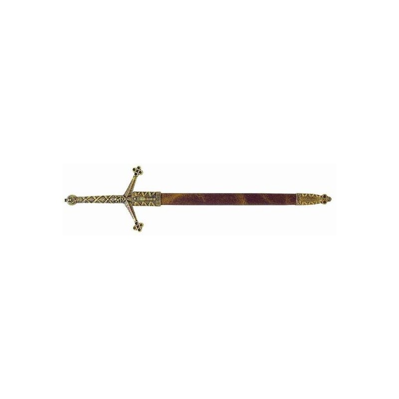 Otvírač dopisů, Claymorský meč s pochvou, délka: 30 cm, hmotnost: 96 g, materiál: kov a imitace kůže.