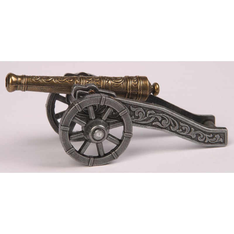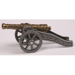 Dekorační replika dokonale a detailně propracované miniatury děla z 18.století. Konstrukce je celokovová, kolečka jsou pohyblivá.