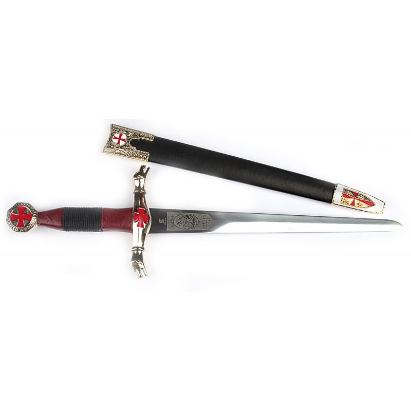 Dekorační replika dýky s pochvou rytíři kříže. Dýka je dodávána v krabičce.