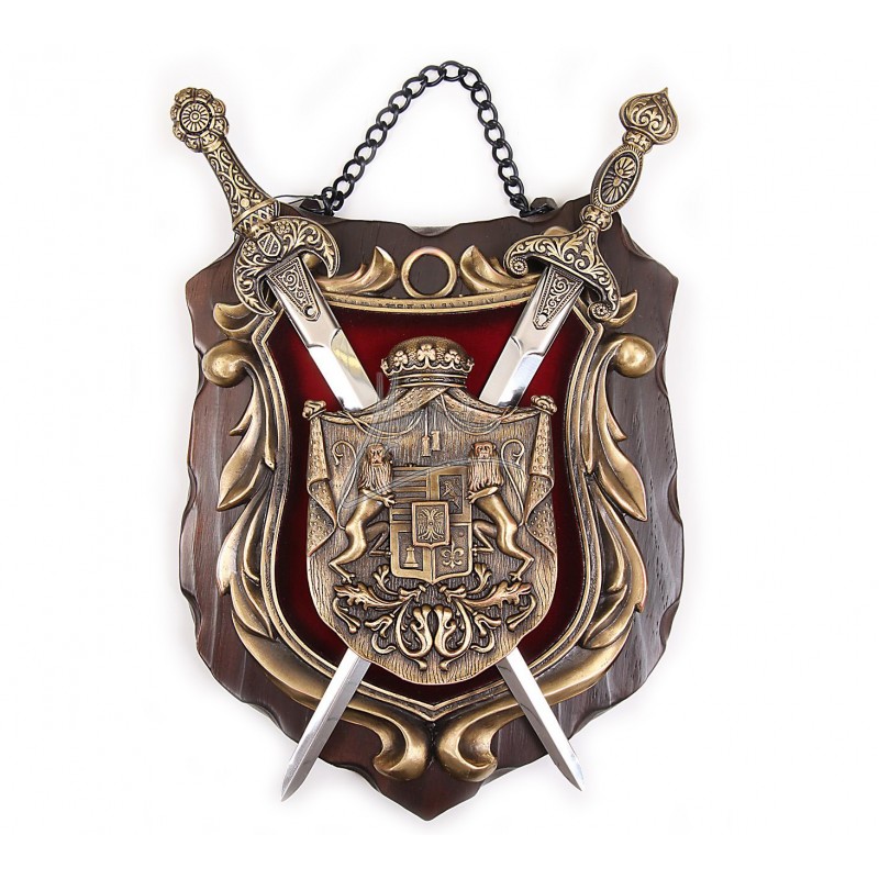 Dekorační replika, erb zdobený meči Excalibur a El. Cid.