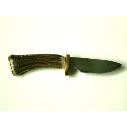 Funkční lovecký nůž. Ruční výroba. Nůž s pevnou čepelí. Délka čepele tohoto loveckého nože je 100 mm, šířka čepele 30 mm a celková délka je 200 mm. Čepel je z černé oceli, kování mosazné, střenka z jeleního parohu.