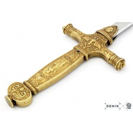 Dekorační replika, meč Excalibur, legendární meč krále Artuše. Mosazná povrchová úprava.
