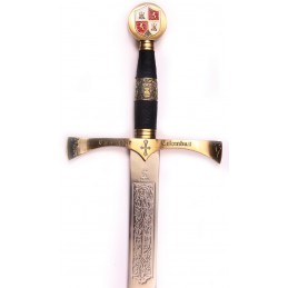 Dekorační replika, meč Kryštof Kolumbus. Meč je zdobený a na čepeli gravírovaný.