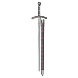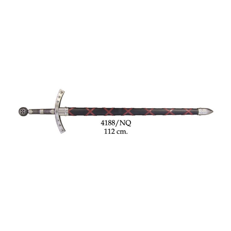 Dekorační replika, meč Hugo de Paynse, 1.Křížová výprava, Francie. Meč je vyroben v niklové povrchové úpravě a dodáván včetně vyobrazené pochvy.