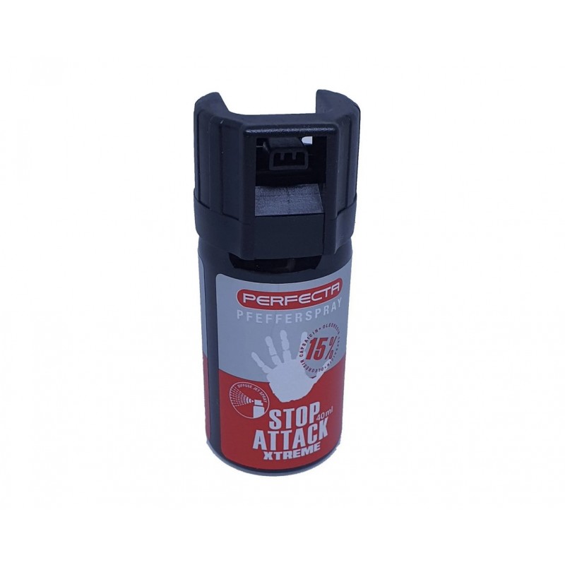 Pepřový sprej Perfecta Stop Attack Xtreme je navržen tak, aby byl účinný na vzdálenost 3-4 metry. Jeho použití je vhodné v případě nouze proti jakémukoli útočníkovi, ať už se jedná o lidi či útočící zvířata.