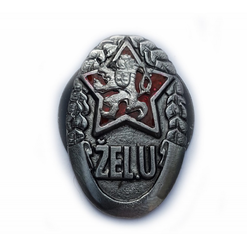 Replika odznaku železničního učiliště. Odznak pro absolventy ŽEL.U byl zaveden v roce 1955 a jeho platnost byla ukončena v roce 1962. Odznak je elipsovitého tvaru a připevňoval se ke stejnokroji pomocí šroubu s maticí.