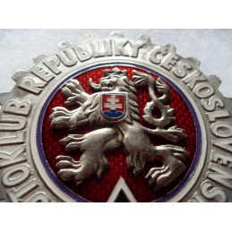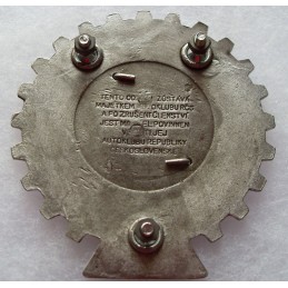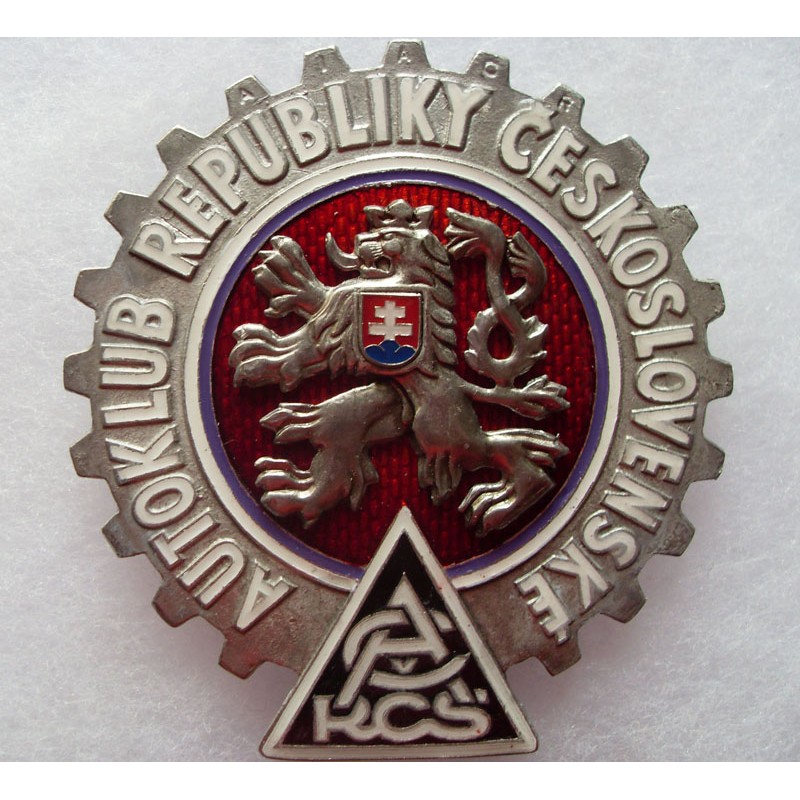 Replika znaku Autoklub Republiky Československé z 30. let. Na zadní straně se nachází matice k uchycení a nápis: Tento odznak zůstává majetkem autoklubu RČS a po zrušení členství jest majitel povinnen vrátit jej Autoklubu Republiky Československé.