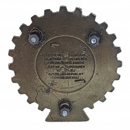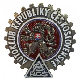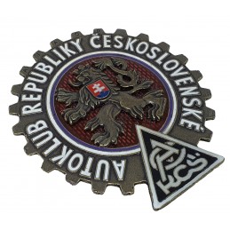Replika znaku Autoklub Republiky Československé z 30. let. Na zadní straně se nachází matice k uchycení a nápis: Tento odznak zůstává majetkem autoklubu RČS a po zrušení členství jest majitel povinnen vrátit jej Autoklubu Republiky Československé.