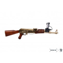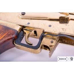 Dekorační replika útočné pušky AK47 ve zlatém provedení.