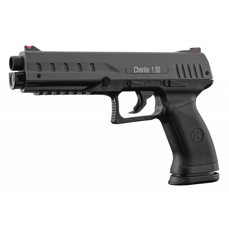Model Charlie 1.50 je vyroben z odolných kovových vnitřních částí, které doplňuje lehké polymerové tělo a masivní kovový závěr. Ten je pevný a vybavený světlovodnými mířidly, která usnadňují zamíření i při horších světelných podmínkách. Oproti ostatním modelům nabízí Charlie výsuvný zásobník, díky němuž lze velmi rychle přebít a pokračovat ve střelbě. K jeho uvolnění stačí stisknout oboustrannou páčku uprostřed závěru směrem dolů. Pod hlavní se nachází krátká lišta Picatinny pro případné uchycení laseru nebo svítilny. Jediná pojistka je integrována přímo ve spoušti.