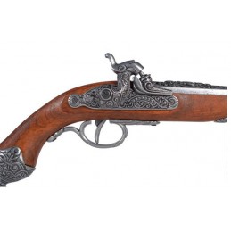 Dekorační replika, italská pistole (Brescia) 1825. Pistole má pohyblivý mechanizmus. Do pistole lze vložit kapslíky, které imitují střelbu. Vyrobeno v šedé povrchové úpravě.