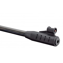 Klasická pružinová vzduchovka se zalamovací hlavní o délce 450 mm, zasazená do černé polymerové pažby s ergonomickým pistolovým úchopem a měkkou gumovou botkou pro pohodlné opření o rameno.