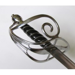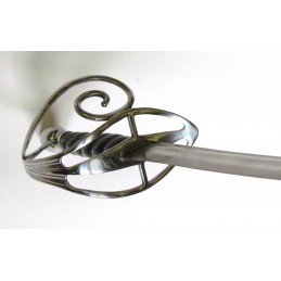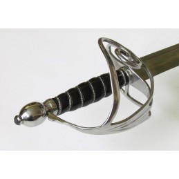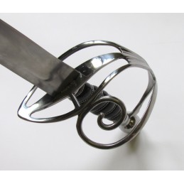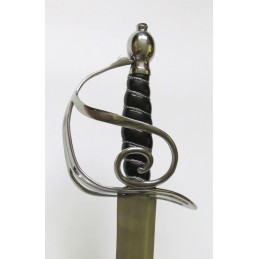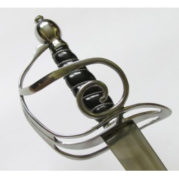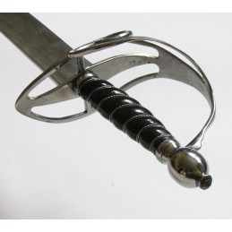 Funkční replika šavle pro britské důstojníky kolem roku 1775. Rukojeť je vyrobena z černé bůvolí rohoviny.
