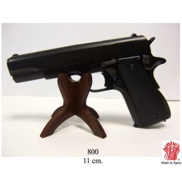 Dřevěný stolní stojánek pro vystavení revolveru.
