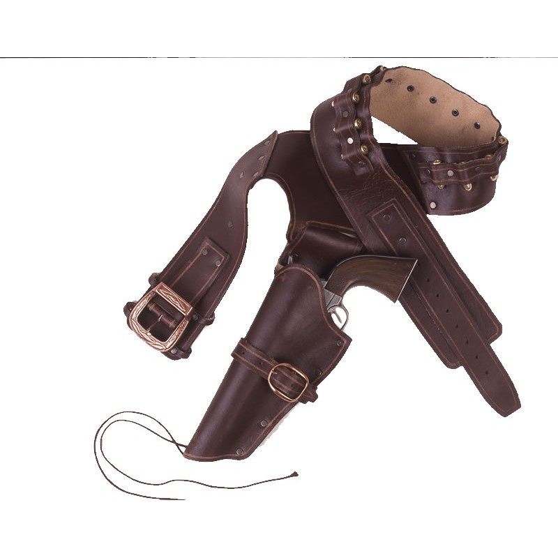 Westernový holster 115 cm pro jeden revolver + 14 nábojů.