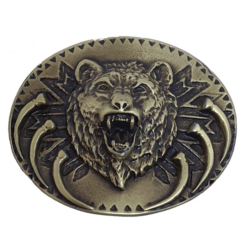 Westernová spona s vyobrazením medvěda.