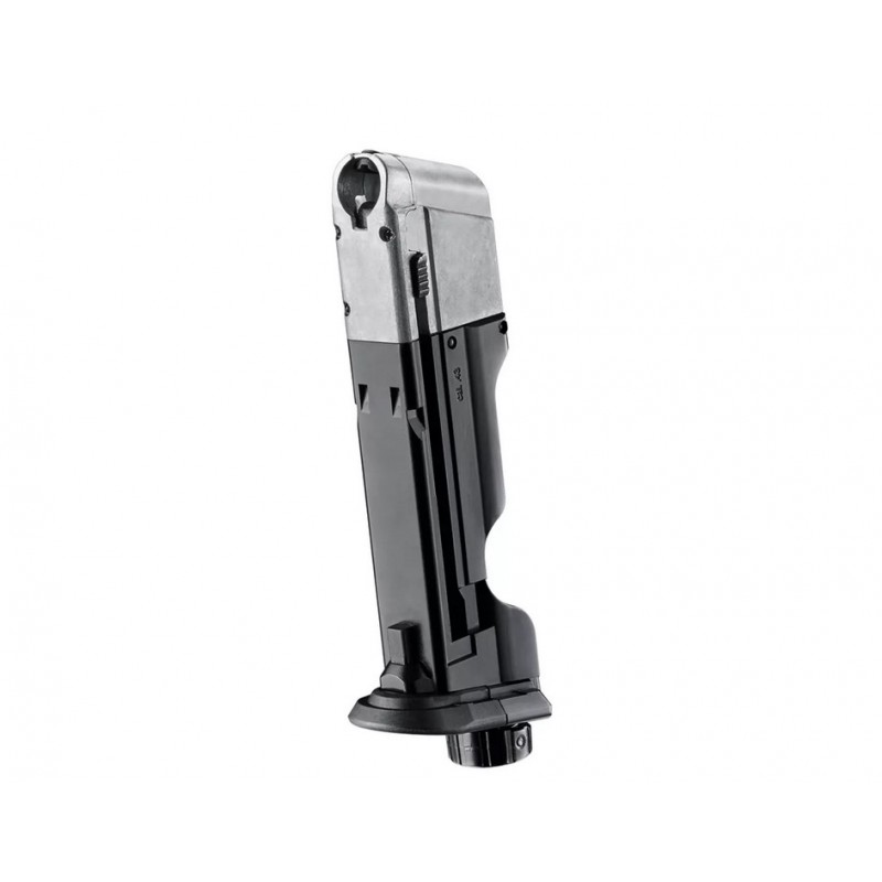 Náhradní zásobník pro RAM CO2 pistoli Umarex Walther PPQ M2 T4E kal. 43. Zásobník pojme až osm kuliček a je speciálně navržen pro účely sebeobrany. Obsahuje speciální ventil umožňující rychlé napíchnutí CO2 bombičky a okamžitou střelbu. Pro bezpečné skladování je bombička aktivována až po úderu dlaně do ventilu, což umožňuje dlouhodobé uchování nenapíchnuté bombičky v zásobníku bez rizika poškození těsnění. Díky tomu Umarex efektivně řeší problém možného selhání zbraně v situacích sebeobrany.