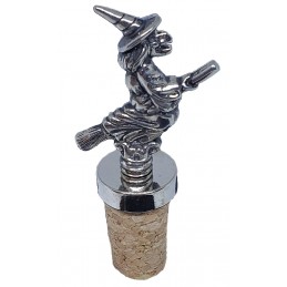 Postříbřená, ozdobná, korková zátka do lahve s motivem čarodějnice. Zátka může sloužit jako ozdoba i praktický doplněk.