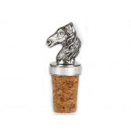 Postříbřená, ozdobná, korková zátka do lahve s motivem koňské hlavy. Zátka může sloužit jako ozdoba i praktický doplněk.