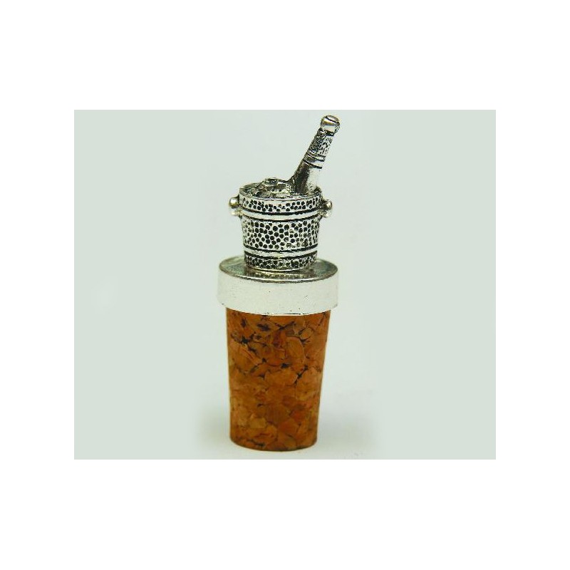 Postříbřená, ozdobná, korková zátka do lahve s motivem šampaňského. Zátka může sloužit jako ozdoba i praktický doplněk.