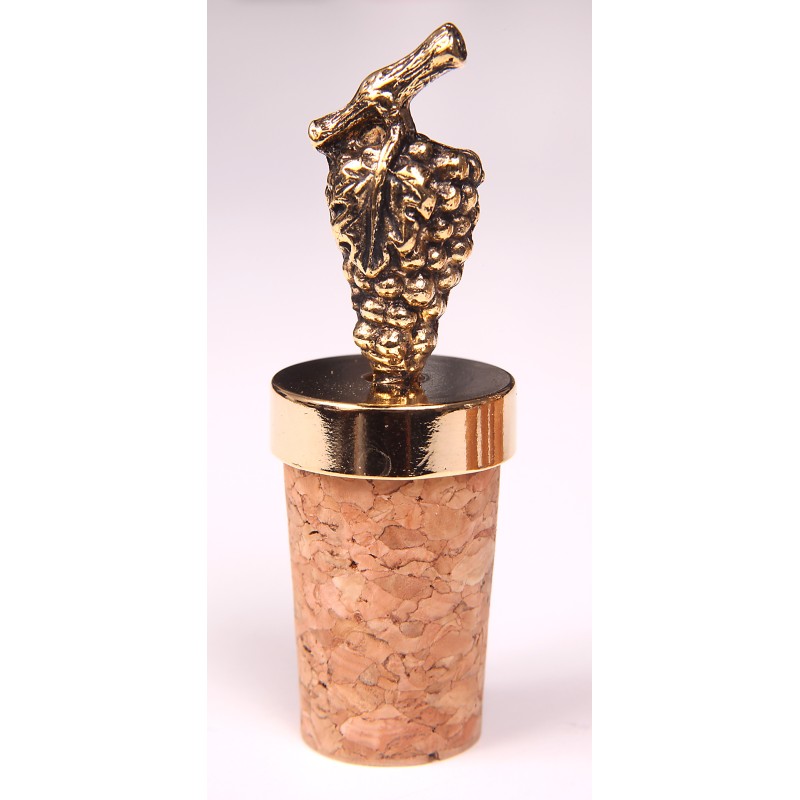 Ozdobná, korková zátka do lahve s motivem hroznového vína. Zátka může sloužit jako ozdoba i praktický doplněk.